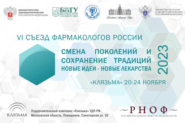 Правление Российского научного общества фармакологов (РНОФ) информирует о проведении VI Съезда фармакологов России 20-24 ноября 2023 года на базе «Оздоровительного комплекса Клязьма» Управления делами Президента РФ (Московская обл., Мытищинский р-он., поселок Поведники. Заезд 20 ноября, отъезд 24 ноября).