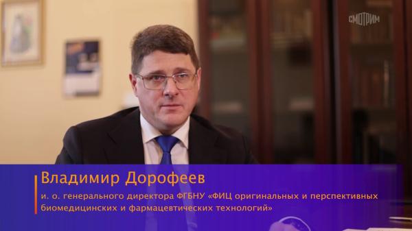 Важной частью программы стал специальный репортаж «Меганаука и центры полного цикла доклинических исследований — в помощь биофармацевтике нового поколения». В сюжете руководитель нашего Центра Владимир Львович Дорофеев рассказал о реализации полного цикла доклинических исследований инновационных лекарственных препаратов.