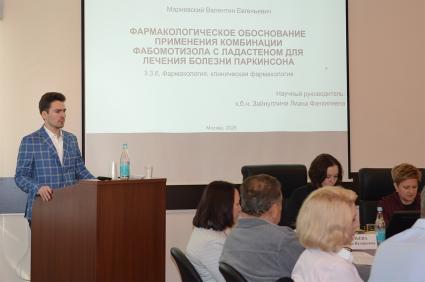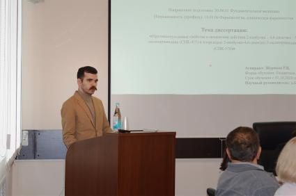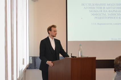 Также результаты своей диссертационной работы изложил соискатель Центра, научный сотрудник лаборатории молекулярной фармакологии Логвинов Илья Олегович (научный руководитель — в.н.с. лаборатории молекулярной фармакологии, к.б.н. Антипова Татьяна Алексеевна).