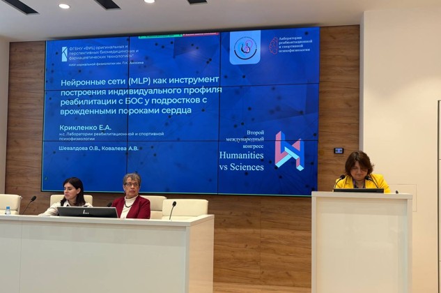 На конгрессе с устным докладом «Нейронные сети (MLP) как инструмент построения индивидуального профиля реабилитации с БОС у подростков с врожденными пороками сердца» выступили сотрудники лаборатории реабилитационной и спортивной психофизиологии: Крикленко Е.А., Шевалдова О.В. и Ковалева А.В.