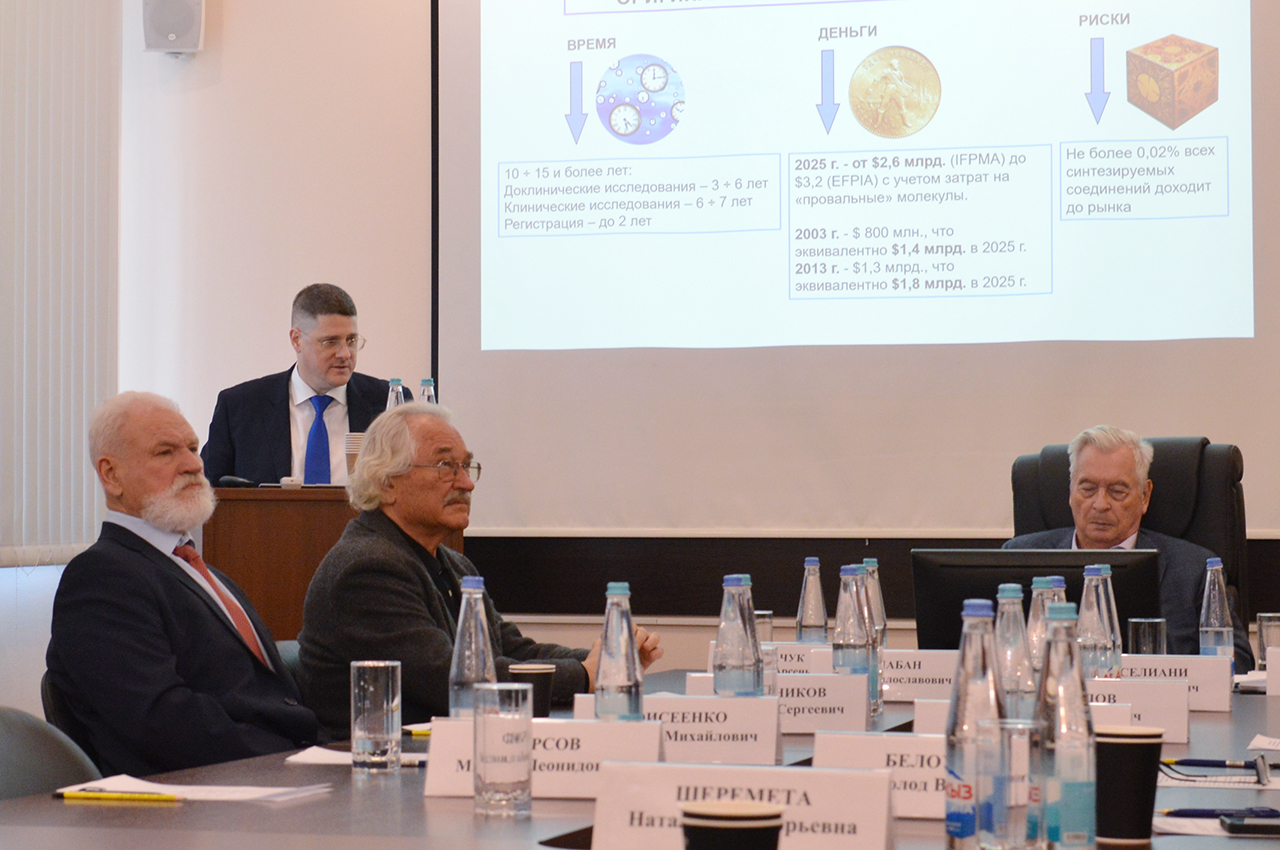 С первым докладом выступил и.о. генерального директора Центра, доктор фармацевтических наук, профессор Дорофеев Владимир Львович. В своем докладе «Цель и задачи Центра. Современная технологическая платформа разработки оригинальных лекарственных препаратов» Владимир Львович представил концепцию формирования передовой технологической платформы, базирующейся на модульном принципе организации. Было отмечено, что данный подход призван обеспечить интеграцию научного потенциала с запросами фармацевтической индустрии в контексте реализации государственных приоритетов в области здравоохранения и лекарственной безопасности.