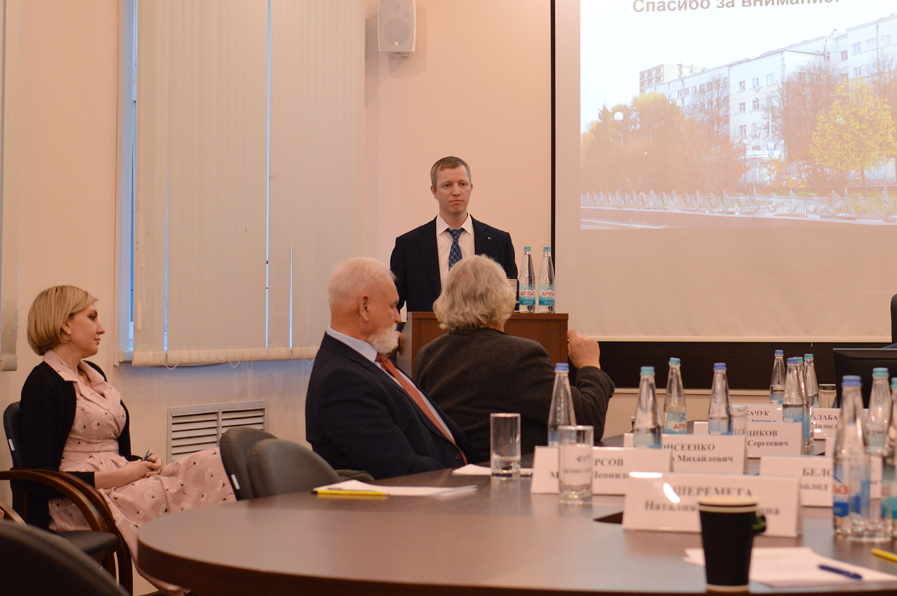 Далее выступил руководитель отдела химии лекарственных средств, доктор химических наук Мокров Григорий Владимирович с докладом «Дизайн, синтез и изучение активности потенциальных лекарственных средств». Его доклад был посвящен используемым в Центре современным подходам к конструированию новых биологически активных соединений, их синтезу и изучению фармакологических свойств.