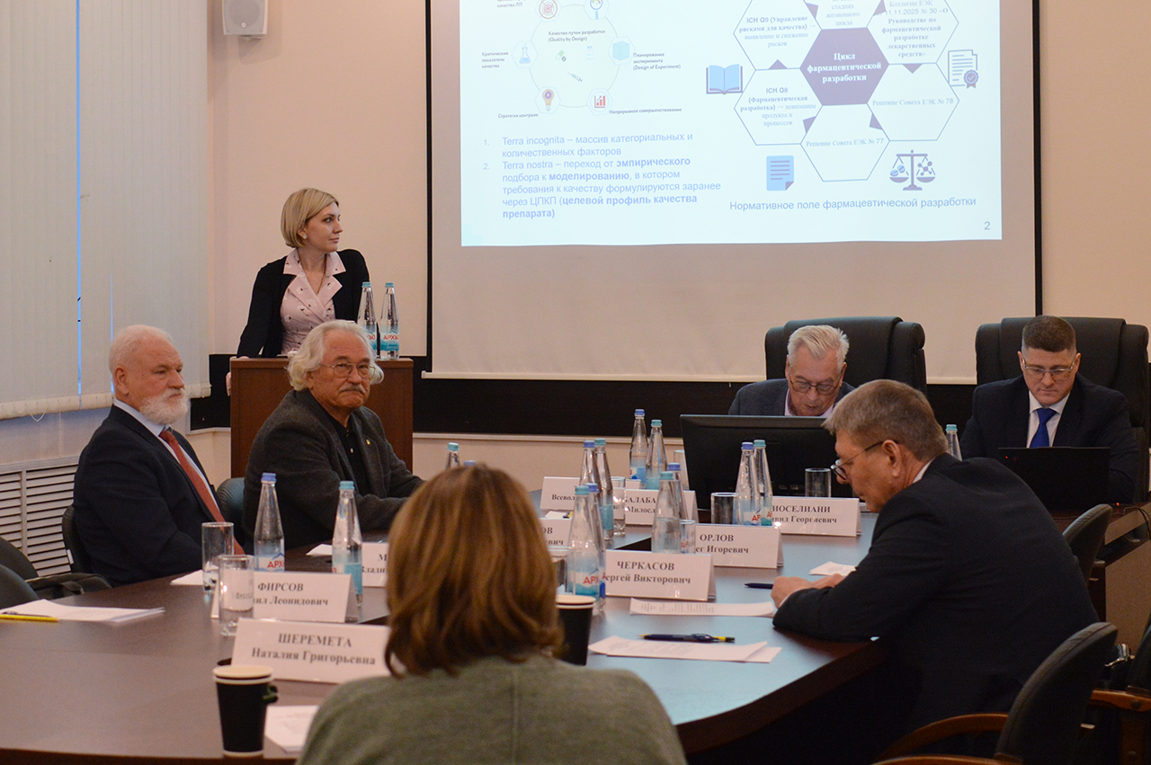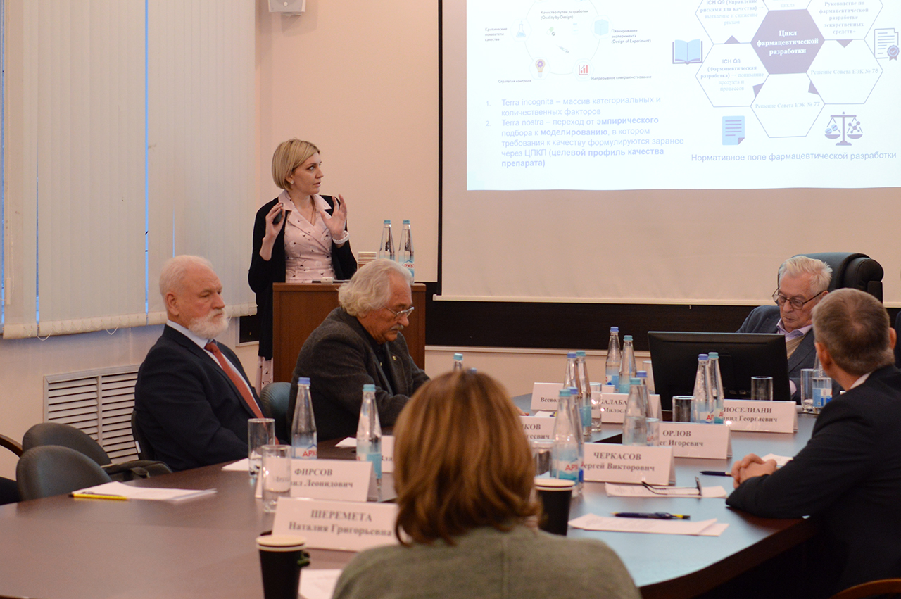 Сессию завершила заведующий лабораторией технологии лекарственных препаратов, доктор фармацевтических наук Блынская Евгения Викторовна. В докладе «Создание современных оригинальных лекарственных препаратов с использованием методов формального планирования экспериментов в рамках концепции «качество посредством разработки» Евгения Викторовна представила оригинальный риск-ориентированный подход к разработке лекарственных препаратов, базирующийся на систематической оценке критических параметров качества с использованием экспериментально обоснованных данных и методов математического планирования.